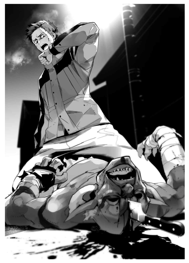 Akira, taking advantage of the chance, firmly re-gripped the knife he had been holding in his other hand――
